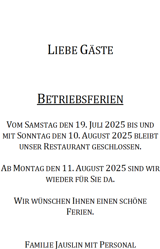 Einen angenehmen Aufenthalt wünscht Ihnen Familie Jauslin & Co.